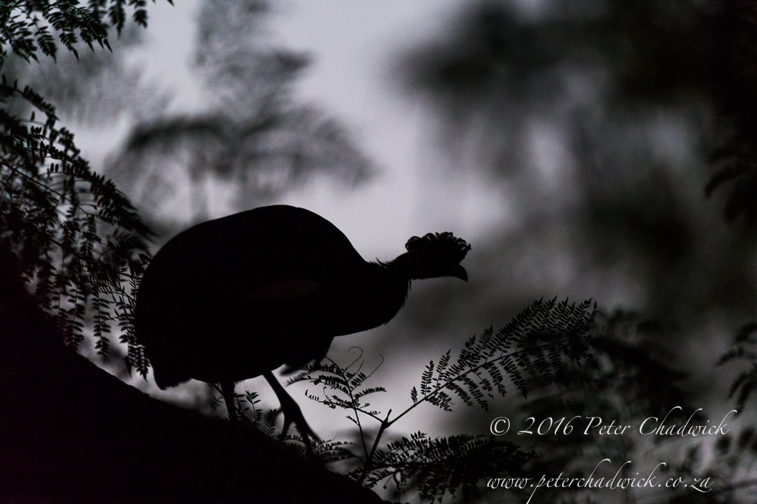 Crested Guineafowl going to roost, Mlilwane Game Reserve, Big Game Parks, Swaziland