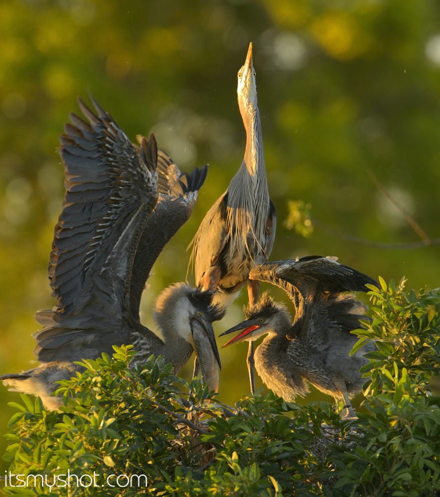 Blue heron Feeding babies